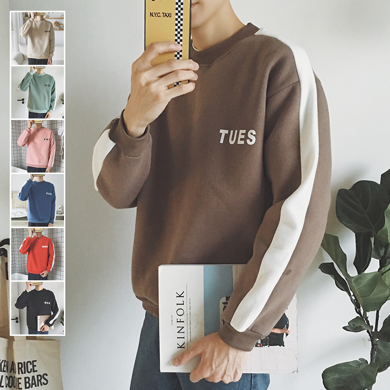 男裝撞色字母韓版圓領男士套頭衛衣春裝新款運動衫
