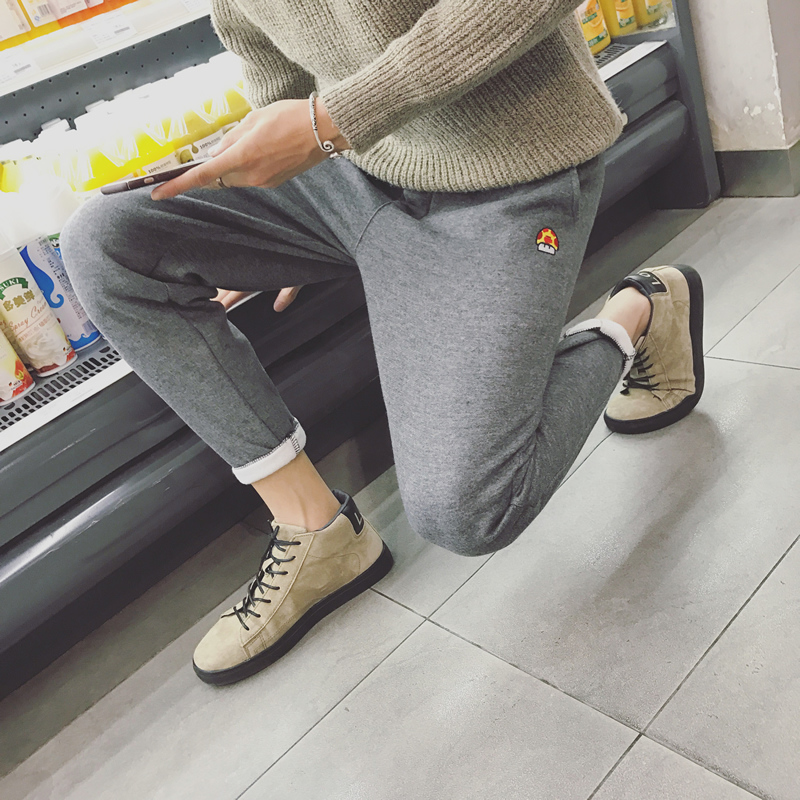 / 男裝卡通蘑菇抓絨加厚男士小直腳修身運動褲休閑褲