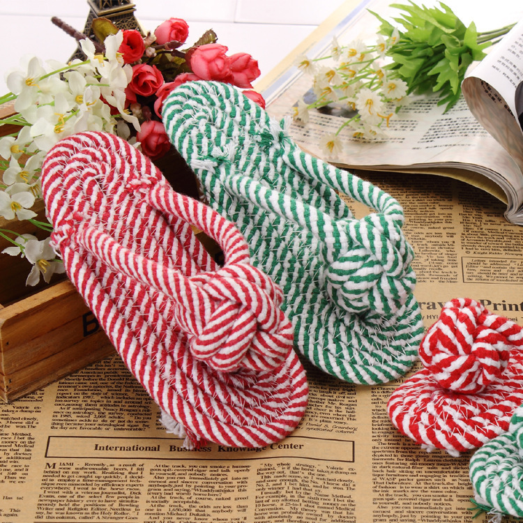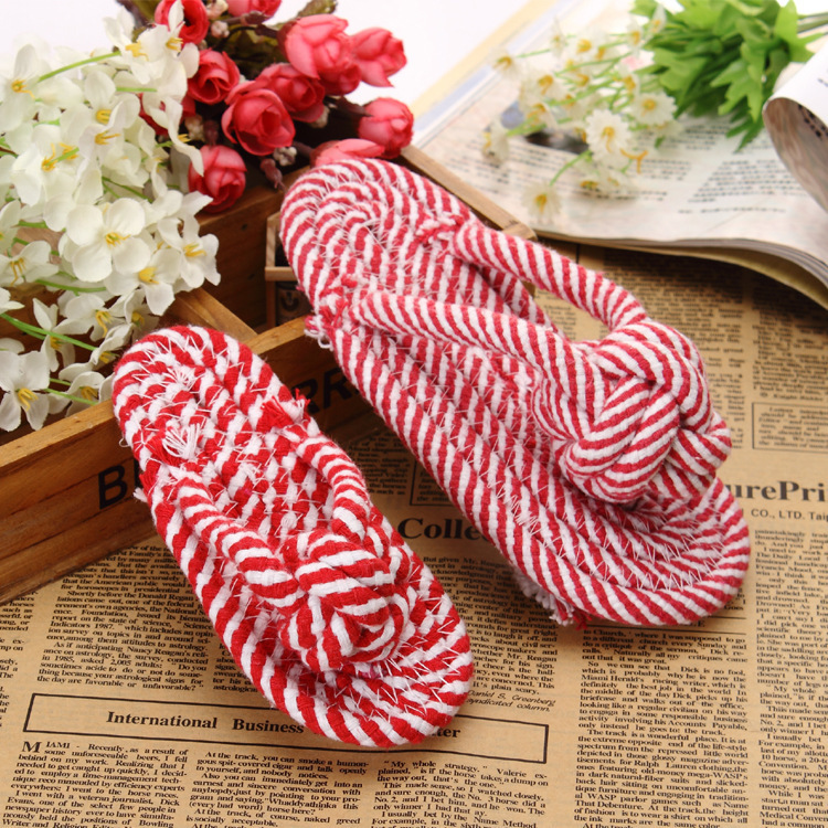 紅白雙色拖鞋狀棉繩節中型犬耐啃咬磨牙玩具,外貿出口品質