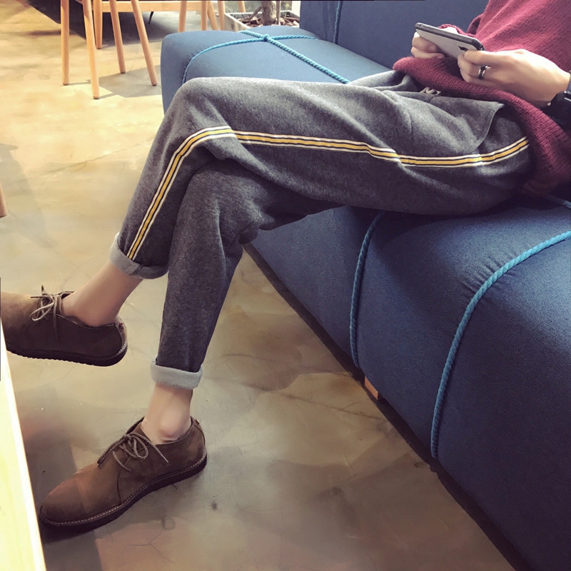 / 男裝韓版貼條加厚抓絨運動褲男士小腳哈倫褲衛褲潮