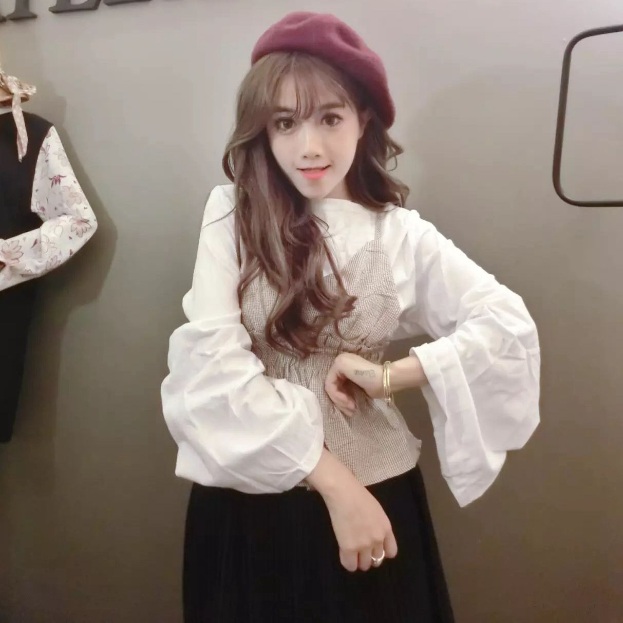 均碼: 上衣:衣長58cm 肩寬38CM 胸圍100cm(彈力) 袖長56cm
