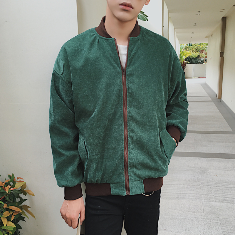 男裝字母刺繡韓版棒球領燈芯絨短款男士夾克外套