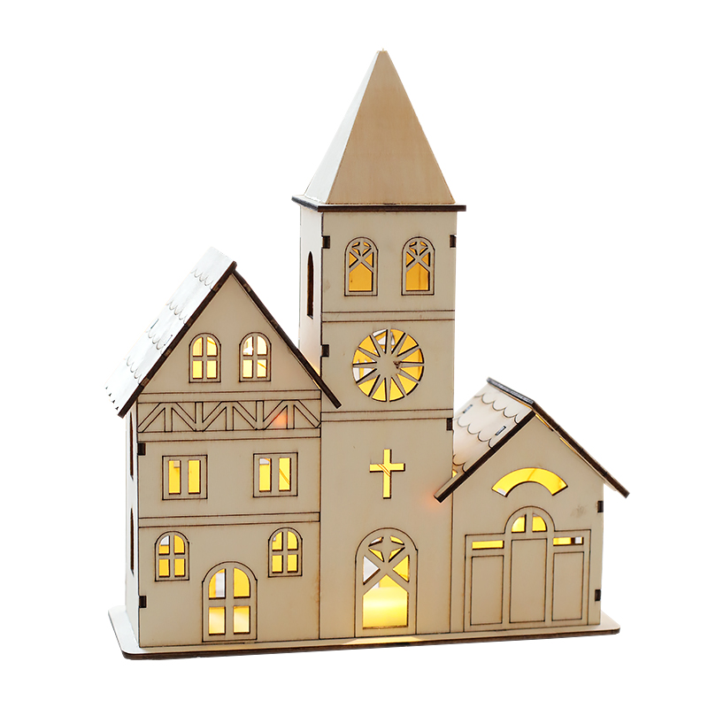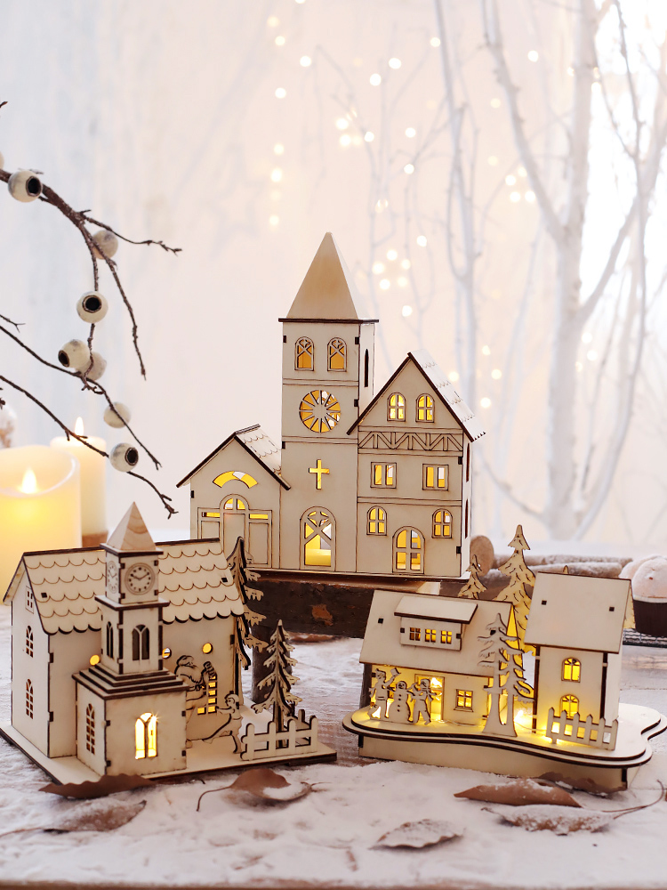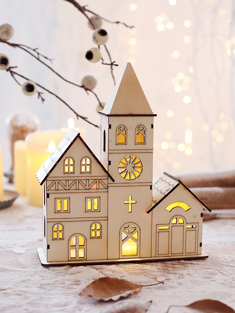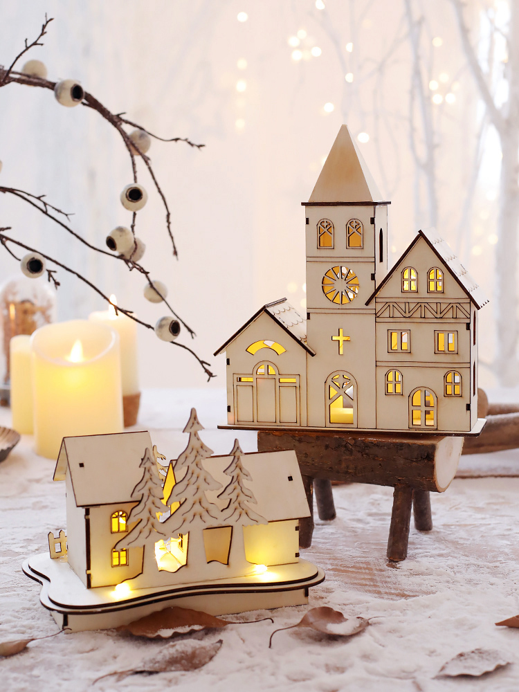 圣誕節裝飾電池led發光木質庭院鐘樓布置擺件送朋友寶寶節日禮物