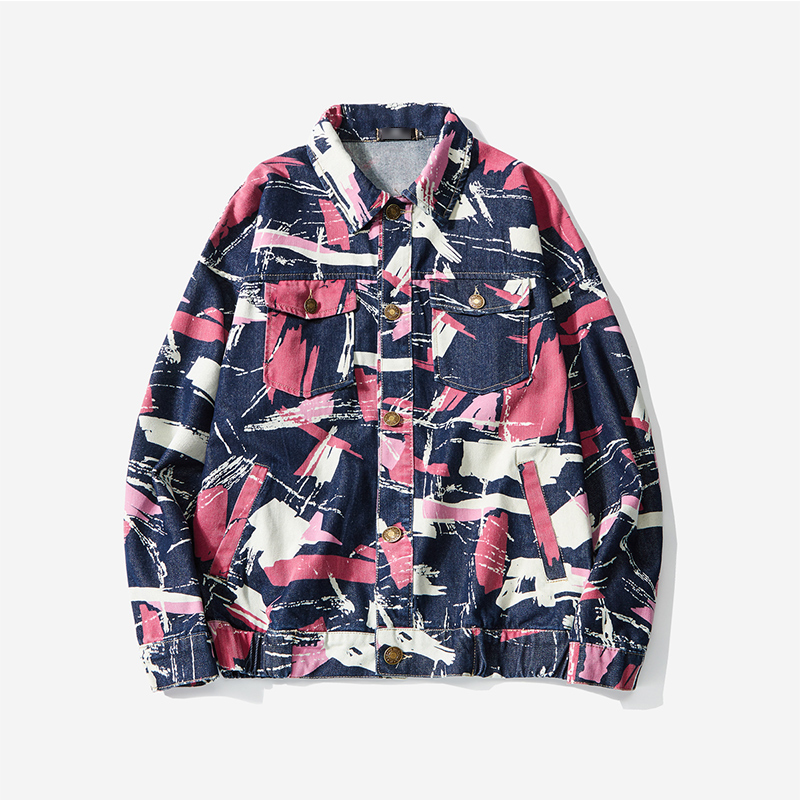 春季新款韓版迷彩印花翻領花色外套男士長袖夾克潮